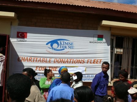 Madagaskar'da Kimse Yok Mu Derneği'nin 4 gün boyunca sürecek yardımında toplam 2 bin aileye yemek dağıtılacak. Yardımların yapılması dolayısı ile yerel beyediye binası önünde tören düzenlendi. Törene Türk Büyükelçi Ahmet Ercüment Enç, College La Lumiere International Genel Müdürü Ertuğrul İncekul, Talatamaty Belediye Başkanı Dr. Razafındratsimba Adrien Rado ve devlet yetkilileri katıldı.