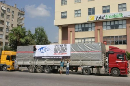 Adana'da Kimse Yok Mu Derneğince Afrika için hayırsever iş adamları ve vatandaşlardan toplanan 200 ton dolayındaki giyim, ayakkabı ve gıda ve temizlik malzemeleri yola çıktı. Vali İlhan Atış, törenle yola çıkan 6 TIR dolusu yardım için hayırseverlere teşekkür etti.
