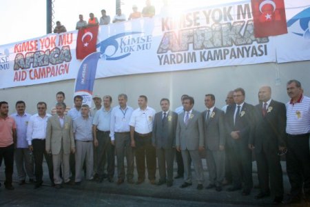 Mersin Valisi Hasan Basri Güzeloğlu da çok önemli ve anlamlı bir buluşma için toplandıklarını belirterek, “Ramazan ayının insanlara yaşattığı birlik, beraberlik ve yardımlaşma, dayanışma noktasında Türk milletinin her kesiminden kişinin gönlünü kattığı yardımları, açlıktan ölen ve dünyanın gözü önünde büyük bir insanlık dramına sahne olan Somali’ye uğurlamanın mutluluğunu yaşıyoruz.” dedi.