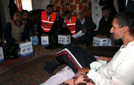 Sabah saatlerinde yola çıkan grup, özenle kesilen kurban etlerini koli ve bunların yanında çeşitli hediyelerin bulunduğu malzemeleri alarak Gülveren köyüne doğru yola çıktı. Midyat’tan 18 kilometre uzakta olan Gülveren köyünde muhtar Ali Alkol ve köylüler tarafından karşılanan KimseYokMu gönüllüleri aileleri ziyaretlerinde Acar ailesinde gözyaşlarına boğuldu. Acar ailenin çocukları yaşları ilerledikçe yürüyemiyor, koşamıyor ve konuşamıyor. DurumuKimseYokMu gönüllülerine anlatan evin reisi Nurettin Acar, “Durumumuz ortadadır. Hepimiz bu odada yaşıyoruz. Çocuklarım dışarıdaki çalıların altında banyo yapıyor. Bu mübarek günde bizleri ziyarette ettiğiniz için hepinize teşekkür ederim.” şeklinde konuştu.