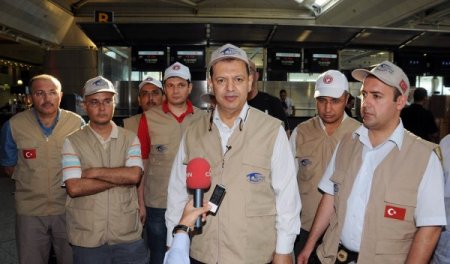 Atatürk Havalimanı’nda açıklama yapan kafile sorumlusu Doktor Haluk Şener Özpolat, İzmir, Isparta, Adana, Mersin, Osmaniye’den 17 kişilik kafile ve çocuk ilaçları ağırlıklı bir ton sağlık malzemesi ile yola çıktıklarını anlattı.