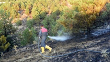 Kırıkkale’nin Ahılı Tepesi Mevkii’nde meydana gelen orman yangınında 100 dönümlük çam orman alanı yandı.