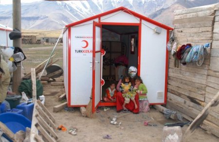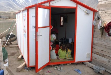 Iğdır'da yaşayan Gündoğdu ailesi, kış mevsimini Kızılay'ın verdiği sobasız konteynerde geçirdi.
