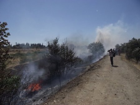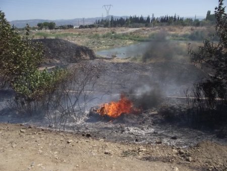 Balıkesir’in Edremit ilçesinde, yerleşim yerlerine yakın bir yerde bulunan dere yatağında yangın çıktı. Baraj Caddesi arkasındaki dere yatağında kuru otların tutuşması sonucu çıkan yangın, rüzgârın da etkisiyle büyüdü. Etrafı saran dumanlar, cadde üzerindeki yerleşim yerlerine ulaştı. Olay yerine çağrılan itfaiye aracının lastiği patlayınca, diğerleri yetişerek yangını söndürdü. Vatandaşlardan bazıları da su şişeleriyle alevlere müdahale etmeye çalıştı.