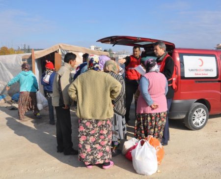Çadırda yaşayan 16 Roman aileye Türkiye Kızılay Derneği Edirne Şubesi tarafından gıda yardımı yapıldı.