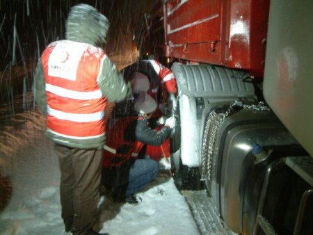 Yakın köylerdeki vatandaşlar da yolda kalan araçları traktörleriyle çekmek için hazır bekledi. Kızılay'a teşekkür eden sürücüler, ”Allah hepsinden razı olsun, Allah Devletimize ve Kızılayımıza zeval vermesin” temennisinde bulundu.
