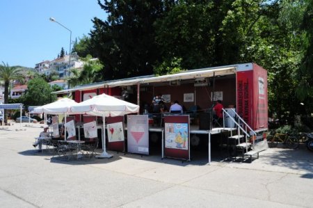 Sağlık Bakanlığı’nın tek kan tedarikçisi olarak Kızılay’ı belirlemesinin ardından dernek, kan bulmak için vatandaşların ayağına gitmeye başladı. İnsanları kan bağışına özendirmek için hazırlanan Kan Alım TIR’ı sokak sokak gezen Kızılay, 24 saat kan nöbeti tutuyor. Kızılay Genel Merkezi tarafından 11 gün boyunca Muğla bölgesinde görevlendirilen Kızılay Kan Alım TIR’ı Fethiye’de konuşlandı. 2 gün boyunca kan bağışlamak isteyen Fethiyelilere ulaşmaya çalışacak olan Kızılay ekibi, özellikle tatilcilerden büyük ilgi görüyor.