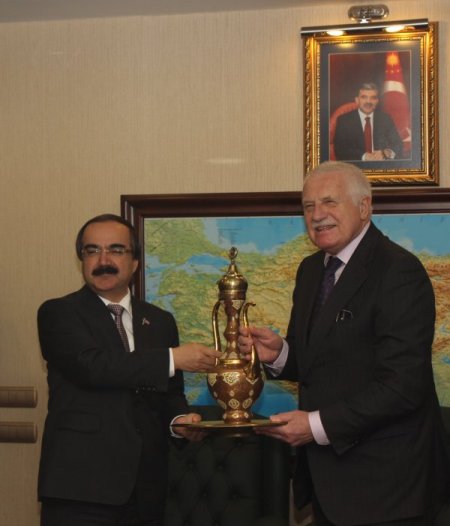 Coş, Yumurtalık Serbest Bölgesinin yanı sıra kuruluş çalışmaları tamamlanan Ceyhan Enerji İhtisas Endüstri Bölgesinden bahsetti. Konuşmaların ardından Klaus ve Coş, birbirine hediyeler takdim etti. Valilikteki ziyaret sonrası Çek Cumhuriyeti Cumhurbaşkanı Vaclav Klaus’a Adana kebabı ikram edildi. Vali Coş’un ev sahipliğindeki yemek öncesi Klaus, mangal yaktı. Klaus, beraberindeki konuklarla birlikte tarihi Taşköprü ve Sabancı Merkez Camiini gezip, yetkililerden bilgi aldı. CİHAN