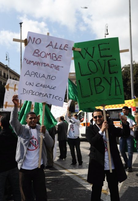 İtalya'nın başkenti Roma'da bulunan Republic Plaza'da koalisyon güçlerinin Libya'ya yönelik saldırıları protesto edildi.