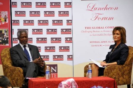 Sivil toplum hareketlerinin toplumsal uzlaşıya nasıl katkıda bulunacağı sorusu üzerine Kofi Annan, "Kanaatimce, Gülen Enstitüsü gibi farklı duygu ve düşüncedeki insanları bir araya getiren, onlara hepimizin aynı dünya gemisinde seyahat eden yolcular olduğumuz gerçeğini hatırlatan kurumlara sahip olmak gerçekten çok önemli. Bugünün dünyasında kendi güvenliğimiz ve refahımız başkalarının güvenliği ve refahı rağmına temin edilemez." dedi.