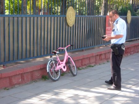 Erzurum 9. Kolordu Komutanlığı Grup Destek Komutanlığı ön bahçe duvarı önünde unutulan bisiklet, bomba paniği yaşanmasına neden oldu.