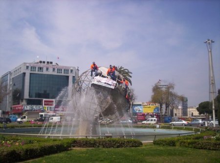 Önce Konak Belediye Başkanı Hakan Tartan'la görüşmek isteyen Ö.B., E.K. ve E.B., ardından kendilerini Dokuz Eylül Meydanı'ndaki dünya maketine zincirleyen S.K., K.K., A.K. ve Y.E. adlı işçiler gözaltına alındı.