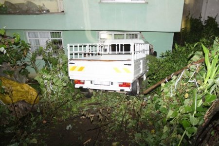 Trabzon’un Vakfıkebir ilçesinde meydana gelen kazada, kontrolden çıkan kamyonet yol kenarındaki eve girdi. Araçta ve evde büyük hasarın olduğu kazada, kamyonetin girdiği odada kimsenin olmaması faciayı önledi.