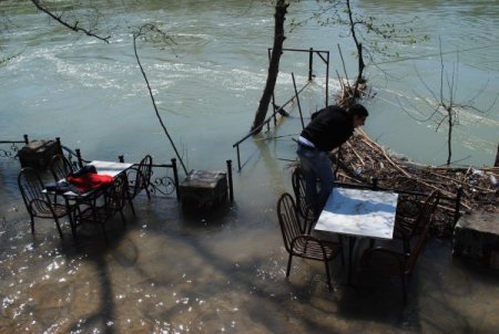 Antalya'nın Manavgat ilçesinde kontrollü su salımı Manavgat Irmağı'nda su seviyesini yükseltti. Su seviyesinin yükselmesi ile birlikte ırmak kenarında bulunan bazı restoran ve çay ocaklarının masa ile sandalyeleri su altında kaldı.