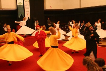 Konuşmanın ardından Mustafa Özbağ’ın nezaretinde Mevleviler sema gösterisi yaptı. Muhteşem sema gösterisinin sonunda semazenler uzun süre alkışlanırken program dualarla sona erdi.