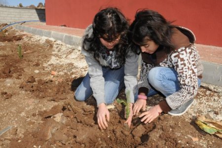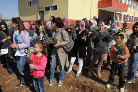 Viranşehir Gülşehir Kadın Aile ve Çocuk Derneği, İsaharabası köyündeki okulun bahçesine fidan dikti CİHAN