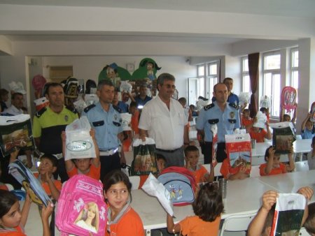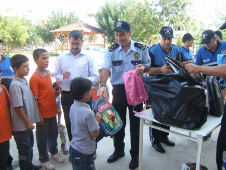 Şehit Cengiz Eroğlu İlköğretim Okulu’nda düzenlenen programa katılan İlçe Emniyet Müdürü Sabit Akın Zaimoğlu, içerisinde defter, kalemtıraş, kalem, boyama kalemleri ve çeşitli kırtasiye malzemelerinin bulunduğu çantaları öğrencilere verdi.