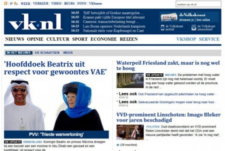 Hollanda basını, Kraliyet ailesinin Birleşik Arap Emirlikleri ziyareti konusunu yakından takip ederek okuyucularına duyurdu. Gazeteler haberlerinde Kraliçe Betarix’in mavi başörtüsü, Prenses Maxima’nın da çağla yeşili başörtüsü taktığını manşetlerine taşıdı.