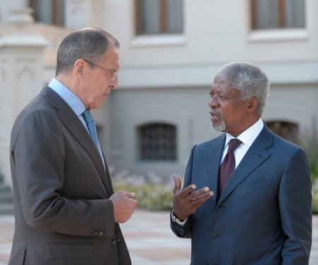Annan ilk olarak akşam saatlerinde Rusya Dışişleri Bakanı Sergey Lavrov’la bir araya geldi. Dışişleri Bakanlığı misafirhanesinde iki saat süren görüşme öncesi Annan’ın binaya girişi ve çıkışı görüntülenebildi. Akşam yemeği olarak gerçekleşen Annan-Lavrov görüşmesinde 21 Temmuz’da süresi dolacak BM gözlemcilerinin süresinin 90 gün daha uzatılması, dış askeri müdahaleye gidecek 7. madde ve benzeri herhangi bir adıma izin verilmemesi, Suriye muhalefeti ile temasın sürdürülmesi konularının ele alındığı kaydediliyor.
