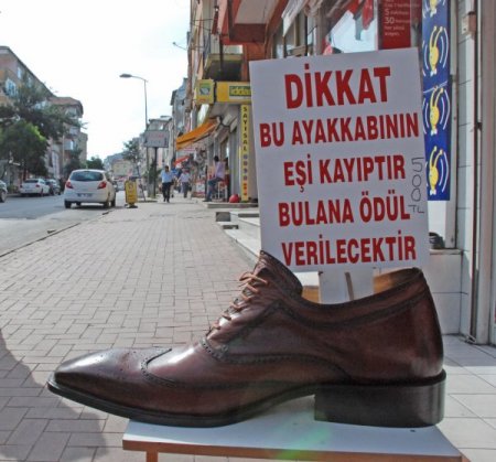 Zonguldak’ın Ereğli ilçesinde bir deri firması tarafından özel sipariş üzerine üretilen ve 1 yaşındaki Yusuf Tuna'nın beşiği olan 108 numara ayakkabının teki çalındı. İş yeri sahibi ayakkabıyı bulana ve kendisine teslim edene 500 lira ödül verecek.