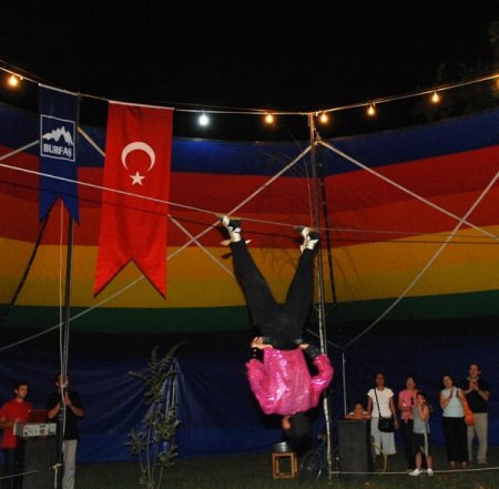 Vatandaşların ilgiyle izlediği sirkte, dünyaca ünlü ip canbazı Zavur İskenderoğlu’nun ip üzerinde yaptığı gösteriler nefesleri kesti. İp üzerinde ustalıkla duran, yürüyen, zıplayan ve bisiklet kullanan İskenderoğlu, ‘İskenderoğlu Dönüşü’ adını verdiği özel şovuyla da ip üzerinde taklalar atarak yürekleri hoplattı.