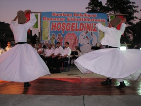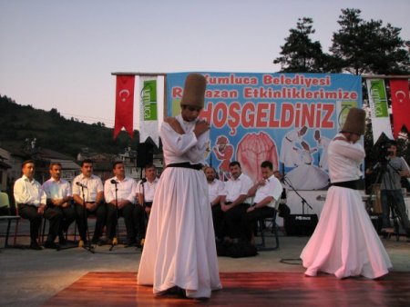 Ulus İlçe Müftülüğü ilahi korosunun sahne aldığı etkinliklerde, Kumlucalılar semazen gösterisini ilgiyle takip etti. İftar saatinde de Kumluca Mehmet Akif Ersoy İlköğretim Okulu'nun bahçesini dolduran vatandaşlar birlikte iftar coşkusunu yaşadı. İftar yemeği sonrasında da çocuklar Karagöz-Hacivat gösterilerinde neşeli anlar geçirdi.
