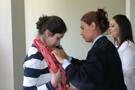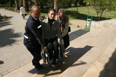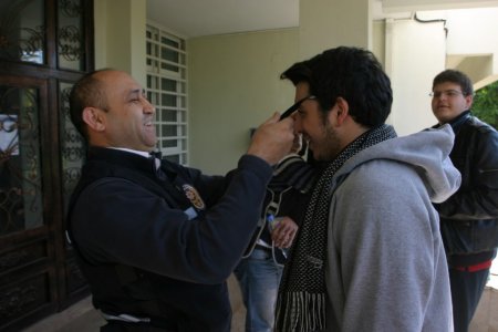 Bu arada, sınava geç kalan bir bayan aday, küpeleriyle sınava giremeyeceği söylenince "Ne yani küpelerimi çıkaramazsam sınava giremeyecek miyim?" diye tepki gösterdi. Bayan polis memuru, genç aday öğrenciye küpelerini çıkarması için ikna edip yardım etti. Öğrenci, daha sonra küpelerini çıkarıp sınava gireceği yerin cam kenarına küpelerini zula etti. Fakülte binasına arka kısımdan girmesi gereken engelli adaylar ise ön kapıdan girince zor anlar yaşadılar. Vatandaşlar, tekerlekli sandalyeli öğrencileri el birliğiyle sınavın yapılacağı yerin merdivenlerinden çıkardı.