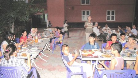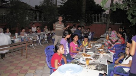 Osmaniye’nin Kadirli ilçesinde Yenimahalle Tufanpaşa Camisi'nde yaz Kur’an kursuna devam eden öğrencilere ve velilere iftar yemeği verildi.