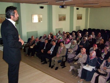 Nevşehir İl Müftülüğü tarafından Rehberlik ve Araştırma Merkezi Salonu'nda düzenlenen semineri, Erciyes Üniversitesi İktisadi ve İdari Bilimler Fakültesi Tiyatro Topluluğu Başkanı Murat Özdeniz verdi.