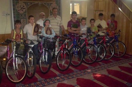 İzmir’in Bayraklı ilçesindeki Mansuroğlu Camisi'ndeki yaz kursuna giderek Kur’ân okumayı öğrenen 13 çocuğa bisiklet hediye edildi. İmam Hatip Hüseyin Barış, 32 kayıtlı öğrencileri olduğunu, 13'ünün ilk defa A kuruna geçtiğini söyledi. Cami derneği üyesi Dursun Akbulut’un girişimleriyle cemaatten yardım toplanarak bisiklet aldıklarını belirten Barış, “Cemeatten sponsor olanlar, 13 çocuğa bisiklet hediye etti. Ben de Kur’ân okumaya geçen 32 öğrenciye mushaf verdim.” dedi.