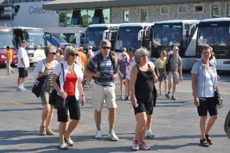Gemilerden inen, çoğunluğu ABD vatandaşı olmak üzere Avrupa ülkelerinden gelen turistler, otobüslerle ören yerleri Efes ve Meryemana turuna çıktıktan sonra Kuşadası'nda alışveriş merkezlerini ve çarşı esnafına yöneldi.