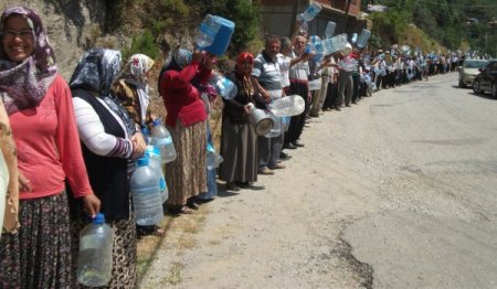 Kuyunun kapatılmasına tepki gösteren köy sakinleri, su bidonlarıyla protesto gösterisinde bulundu. Oluşturdukları 50 metrelik kuyruklarda 'Su istiyoruz' diye bağıran köy halkı, Somali’ye gitmeye hazırlanan Başbakan Erdoğan’ın, önce köylerine gelerek yaşadıkları sıkıntıyı görmesini istedi. Köy sakinlerinden Mustafa Taşönü, söz konusu su kuyusunun komşu köy olan Asmaca ile sınır meselesi nedeniyle mahkemelik olduğunu, kapatılmasının da bundan kaynaklandığını söyledi.
