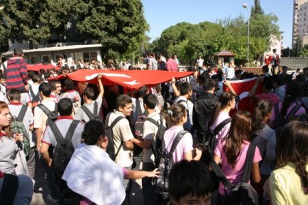 Merkez Seyhan ilçesi Bülent Angın Bulvarı üzerindeki Asker Hastanesi önünde "Kahrolsun PKK" sloganları atıp İstiklal Marşı okuyan 500 öğrenci daha sonra Fuzuli caddesi üzerinden Merkez Camii'ne bayrak açıp bölücü terör örgütü aleyhine slogan atarak yürüdü.