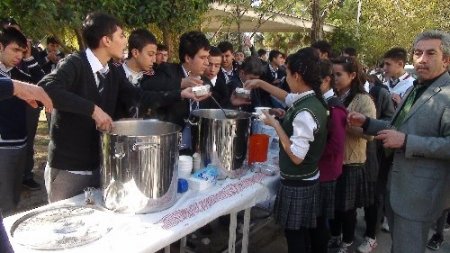 Okul bahçesinde dağıtılan aşureye öğrenciler büyük ilgi gösterdi. Öğrenciler kendi yaptıkları aşureyi kendileri dağıttı. Değişik okullardan gelen davetli öğretmenler de aşure yedi. CİHAN