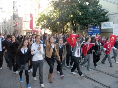 Beyoğlu’nda bir grup liseli, terör örgütünü protesto etti. Galatasaray Lisesi önünde toplanarak İstiklal Caddesi boyunca yürüyen liseliler attıkları sloganlarla terör örgütünü protesto etti.