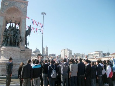 Hakkari’de terör örgütünün hain saldırısı Beyoğlu’nda bir grup liseli tarafından protesto edildi. Galatasaray Meydanı’nda toplanan Sarıyer Cevat Koçak Lisesi öğrencisi yaklaşık 100 kişilik grup, İstiklal Caddesi üzerinden yürüyüşe geçti. ‘Şehitler ölmez vatan bölünmez’ , ‘Kahrolsun PKK’ , ‘PKK şaşırma sabrımızı taşırma’ , ‘Ne mutlu Türküm diyene’ , ‘Askere uzanan eller kırılsın’ , ‘Taksim uyuma şehidine sahip çık’ , ‘Mecliste PKK istemiyoruz’ şeklinde sloganlar atan grup Taksim Meydanı’na geldi.
