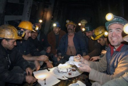 Ailelerinden uzakta, yerin yüzlerce metre altında 'karaelmas' olarak tabir edilen taşkömürü kazarak ekmek parası kazanan maden işçileri, önce ahşaptan bir sofra kurdu. Daha sonra saatler 00.00’ı gösterdiğinde bir birlerine sarılarak yeni yılın gelişini kutlayan madenciler, patronlarını da unutmadı.