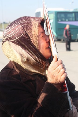 Atatürk Anıtı'na çelenk koyan işçi yakınları saygı duruşu ve İstiklal Marşı'nı okuduktan sonra otobüslere binerek Mustafakemalpaşa'ya hareket etti.