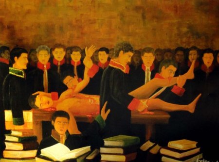 Resimlerde, Türk yargı sistemine olan güvensizlik ile verilen kararların doğruluğuna olan itimatsızlık, bir kez daha gözler önüne seriliyor. Birincilik ödülü alan Erkut, Türkiye'deki adaletin içinde bulunduğu durumu en iyi şekilde resmetti. Resimde, duruşma salonunda hakimlerin önünde ameliyat masasına yatırılmış bir zanlı bulunuyor. Bir avukatın önünde kapalı ve açık kitaplar bulunurken; diğer onlarca avukat ise yapılan ameliyatı seyrediyor. Ameliyat edilen zanlının da kolundan ve bacaklarından hakimler ısırıyor. Bir hakim ise zanlının baş ucunda duruyor. CİHAN