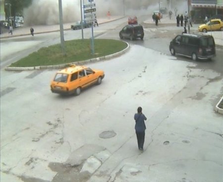 Malatya'da çöken 7 katlı binanın etrafa yaydığı korku ve toz bulutu, mobese kameralarına yansıdı.