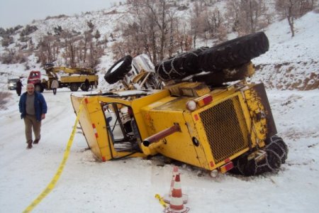 Tepehan bakım evinden yardım için giden lastik tekerlekli kepçe, saat 20.30 sularında yoğun tipi ve sis nedeniyle yoldan çıkarak şarampole kaydı. Dozer operatörü Selçuk Karakaya hastaneye kaldırılarak ayakta tedavi yapıldı.