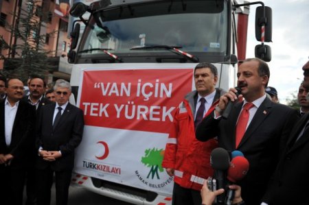 Ankara’nın Mamak Belediyesi, Van’a 4 TIR’lık yardım konvoyu gönderdi. İçinde gıdadan temizliğe, ısıtıcıdan yorgan ve battaniye kadar birçok yardım malzemesi bulunan araçlar törenle uğurlandı.