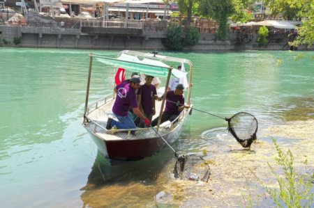 Antalya Manavgat Belediyesi, Manavgat Irmağı'nda temizlik çalışması yaptı. Manavgat Belediyesi Irmak Denetim teknesi, 6 kişilik ekiple ırmak kenarında görüntü kirliliği oluşturan atıkları temizledi. Temizlik ekipleri ırmağa atılan plastik, evsel, gazlı ve alkollü içecek şişelerini uzun mesafeli süzgeçle tek tek alarak temizlik yaptı.