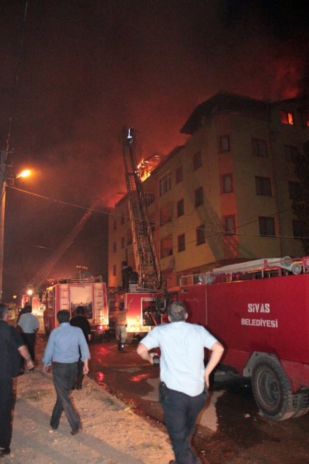 Sivas’ta akşam saatlerinde bir apartmanın çatı katında başlayan ve rüzgarın etkisi ile büyüyen yangın yaklaşık 3 saatlik bir çalışmanın ardından kontrol altına alınabildi. Alevlerin geceyi aydınlattığı yangında itfaiye ekiplerinin yanlış müdahalede bulunduğunu iddia eden vatandaşlarla polis arasında arbede yaşandı.