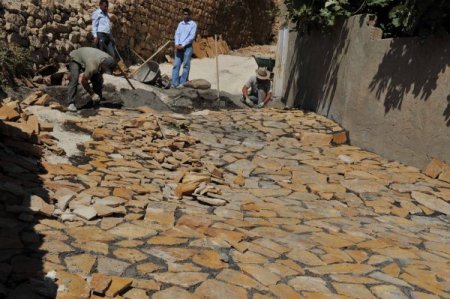 Mardin'de araçların giremediği dar ve dik sokaklar, şehrin tarihi dokusuna uygun ve Mardin'e özgü Ferş taşıyla döşeniyor.