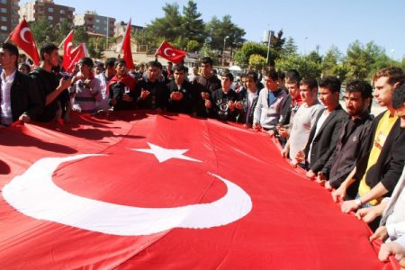 Miting alanında toplanan kalabalık, asker lojmanlarının bulunduğu BP kavşağına yürüyüş yaptı. Sık sık sloganların atıldığı yürüyüşe, evlerine Türk bayrağı asan Mardinliler de destek verdi.