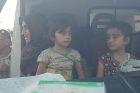 Adana'dan Gazze'ye, yardım amaçlı giden Muhyettin Yıldırım'ı (40), eşi Hatice Yıldırım ve en küçüğü 4 yaşında olan 4 çocuğu ellerinde çiçeklerle karşıladı.