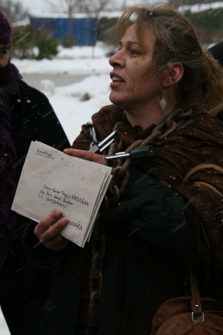 Başkent’te Şefkat-Der üyesi bir grup, '3 Mart Dünya Seks Köleliği ile Mücadele Günü' nedeniyle Meclis önünde zincirli eylem gerçekleştirdi.