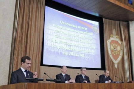 FSB’nin Moskova merkez binasını ziyaret eden Medvedev, kurumun çalışmaları ile ilgili bilgi aldı. Çalışmalardan duyduğu memnuniyeti ifade eden Rusya lideri, “Şimdi duyuracağım rakamları söylemek genelde doğru değil. Ama bu rakamlar FSB faaliyetlerinin neticesi. 2011 yılında 41 yabancı istihbarat elemanının faaliyeti önlendi ve ayrıca aralarında vatandaşlarımızın da bulunduğu yabancı devletlere ait 158 istihbarat ajanını da ortaya çıkardık” dedi.