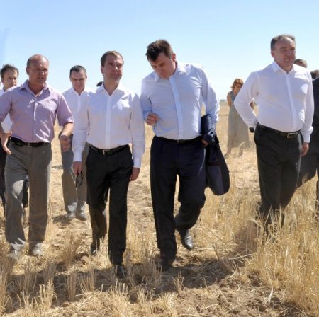 Rusya Başbakanı Dmitri Medvedev, Volgograd Bölgesi’nde tahıl arazilerinde incelemelerde bulundu. Sektörün sorunlarının ele alındığı toplantıda Medvedev’i bilgilendiren Tarım Bakanı Nikolay Fyodorov uygun olmayan hava koşulları nedeni ile tahıl hasadında yüzde 10-15 civarında düşüş beklediklerini ifade etti.